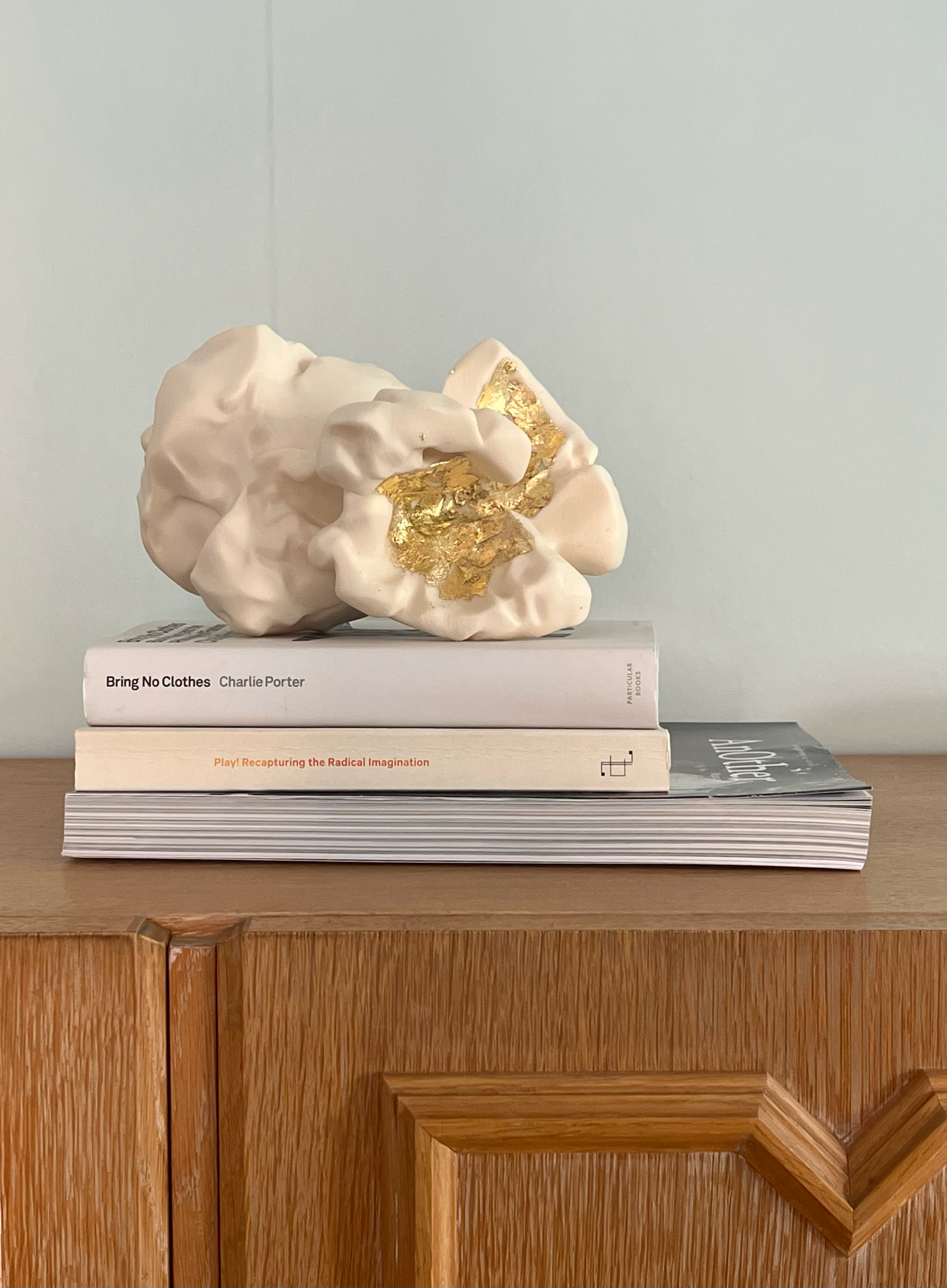 Artist: wiklundwiklund Title: "Gilded popcorn" Material: 3D printed ceramic filament, gold leaf, 181mm x 176mm x 149mm